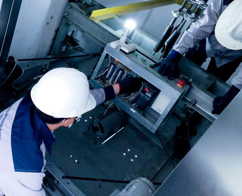 » Chạy thử thang máy để kiểm tra lần cuối.