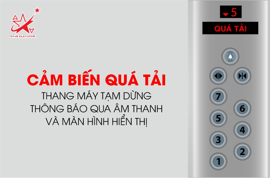 Số hành khách mỗi lượt chở của thang phải nằm trong quy định theo khuyến cáo của nhà sản xuất. Thang sẽ dừng hoạt động và báo tín hiệu âm thanh, đèn cảnh báo để hành khách biết. Từ đó giảm tải số người để đảm bảo an toàn khi thang di chuyển.
