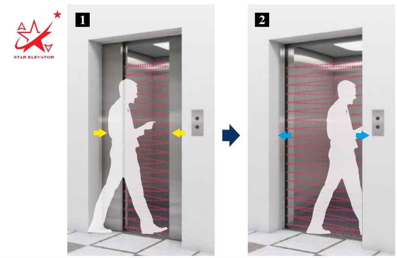 Hệ thống tia hồng ngoại được tích hợp trong quá trình đóng mở thang máy. Có bất cứ vật cản nào ở cửa thang tự động cảnh báo giúp hành khách kịp thời xử lý tránh gián đoạn khi di chuyển.