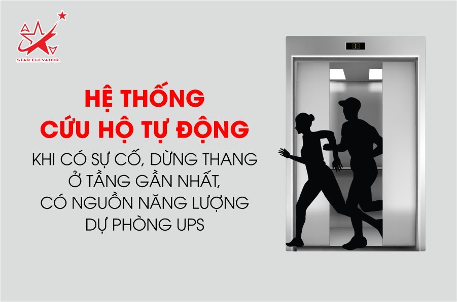 Nhằm hỗ trợ hành khách thoát khỏi các sự cố khi sử dụng thang máy, nhà sản xuất sẽ lắp đặt hệ thống cứu hộ tự động. Điện lưới đang sử dụng đột ngột bị mất ngay lập tức hệ thống điện dự phòng UPS sẽ được kích hoạt, đưa thang về tầng gần nhất rồi mở cửa, mang lại sự an toàn cho người phía trong.