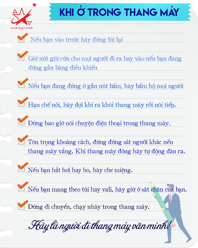 Văn hóa ứng xử khi đi thang máy ở Việt Nam rất cần lan tỏa và phổ biến rộng rãi hơn đến mọi người. Chúc các bạn có thêm nhiều thông tin hữu ích cho cuộc sống của mình.